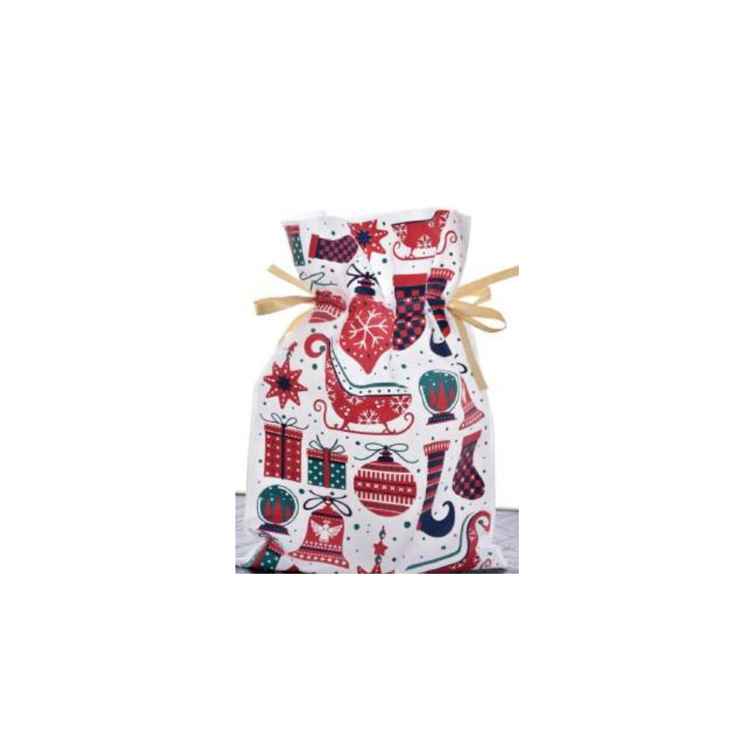 Opakowanie świąteczne z saniami wykonane jest z materiału biodegradowalnego (fizeliny), jego wymiary to: